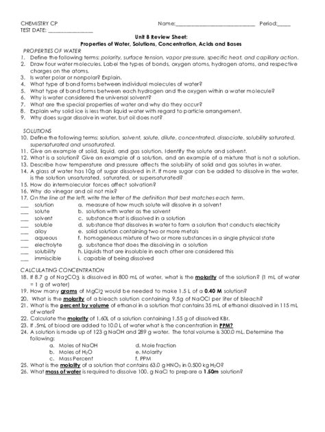 Download Chemistry Review Sheet Unit 8 Answer Key Doc